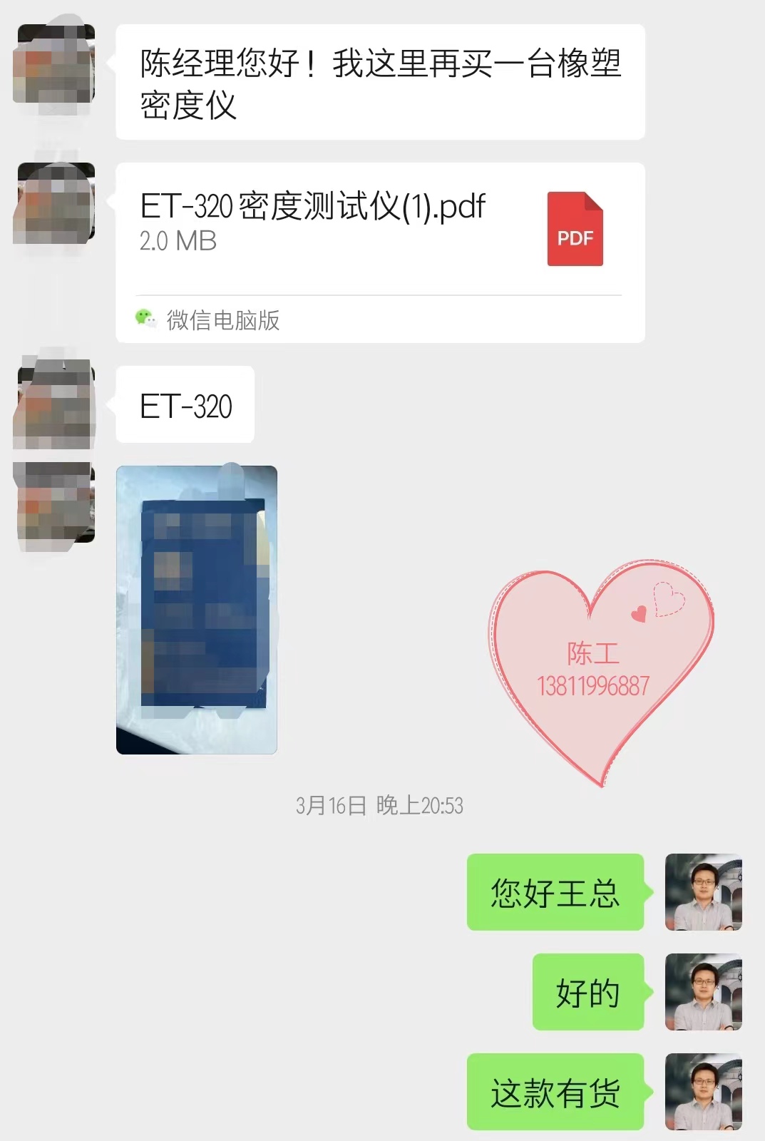 塑料密度的測(cè)定方法,塑料行業(yè)常用的密度儀器ET-320,也是我們的塑料行業(yè)在用過這個(gè)型號(hào)的密度計(jì)后,建分廠復(fù)購和轉(zhuǎn)介紹多的一個(gè)型號(hào),像這位王總時(shí)隔2年再拿采購ET-320密度測(cè)試儀。