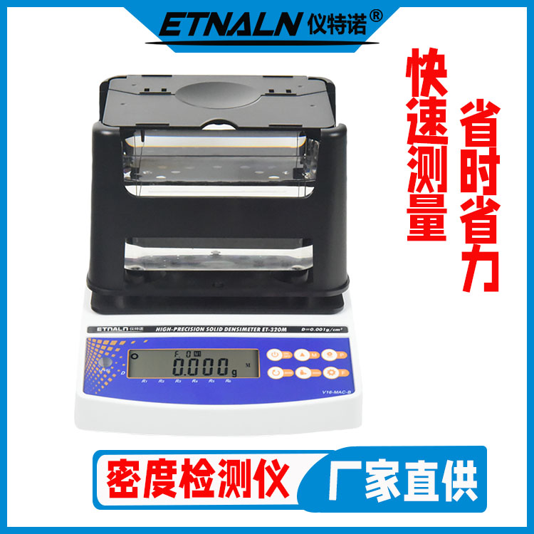 儀特諾ET-320M型多功能固體密度測試儀也叫做多孔供材料密度檢測儀/孔隙率測試儀/含油率測試儀/磨耗量測試儀,依據(jù)ASTM B311、B328、GB/T5163、JIS Z2505、JIS Z2506、MPIF Standard42、MPIF Standard45…等標(biāo)準(zhǔn)規(guī)范,采用高精度稱重傳感器,人性化的測量設(shè)計;可瞬間測得密度值,具有飽和測量法、表面覆蓋防水處理法、高粘稠介質(zhì)液體法等多種測量方法;測量精度高,數(shù)據(jù)可靠,等特點。