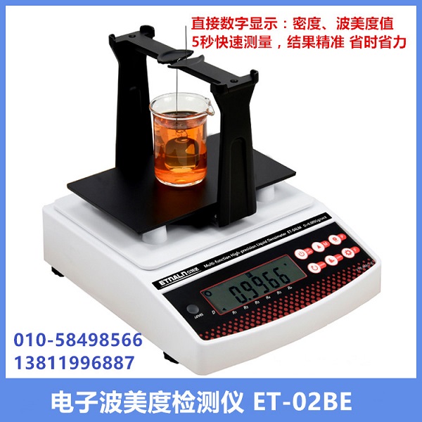 ET-01BE,ET-02BE產(chǎn)品是根據(jù)阿基米德原理,自動(dòng)顯示波美度Bé、密度值D ,測(cè)量精度高、快速、簡(jiǎn)單;密度>1,<1 皆可測(cè)量。